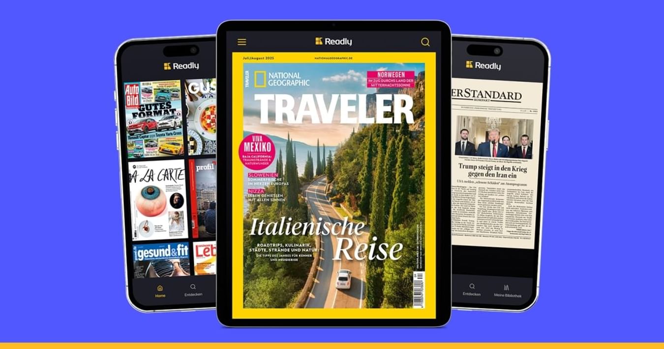 Lesestoff für 1 ganzes Jahr: Mach mit beim Gewinnspiel und check dir mit etwas Glück 2×1 Readly Geschenkkarte für je 12 Monate. Und damit kostenlosen Zugriff auf über 8.000 Magazine und Zeitungen – digital, jederzeit und auf all deinen Geräten.